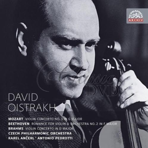 V Davidu Oistrachovi se roku 1908 v Oděse narodila jedna z největších houslových legend 20. století. Praha byla po válce (1946) jednou z prvních destinací jeho zahraničních cest; od té doby do 70. let se do ní opakovaně vracel jako houslista i dirigent. Díky technické suverenitě a překrásnému tónu s nenapodobitelnou vřelostí se stal nepřekonatelným interpretem velkých romantických koncertů. Příkladem může sloužit technicky velmi obtížný Brahmsův koncert D dur natočený v Praze s Českou filharmonií a A. Pedrottim. Ale skutečné mistrovství se často prokáže na zdánlivě jednoduchém klasicistním repertoáru; průzračná struktura a přímočará melodika vyžaduje od interpreta stylovou čistotou a vyrovnanost a kulturu tónu. Právě těmito devizami se vyznačuje Oistrachova nahrávka třetího Mozartova koncertu i Beethovenovy Romance op. 50, kterou s Karlem Ančerlem a Českou filharmonií pořídil roku 1954 již jako virtuos světového renomé. Pro účely tohoto vydání legendárních nahrávek byly snímky nově remasterovány z původních pásů. Nezapomenutelný Oistrachův Brahms, Beethoven a Mozart s citlivě oprášeným zvukem!